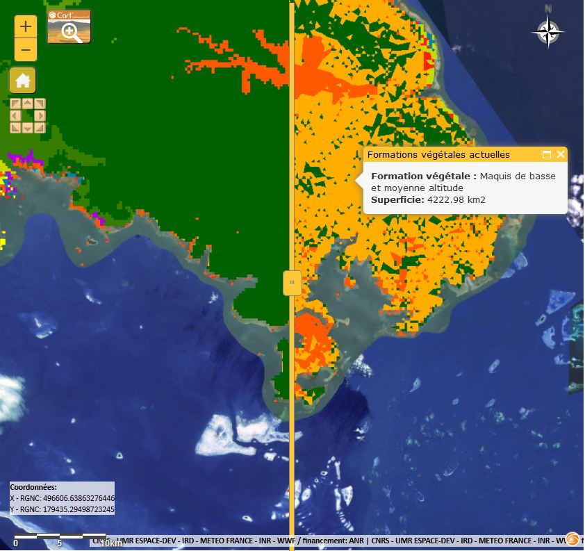 Sources : CNRS - UMR ESPACE-DEV - IRD - METEO FRANCE - INRA - WWF - GIE Océanide/ financement: ANR | Gouvernement de la Nouvelle-Calédonie