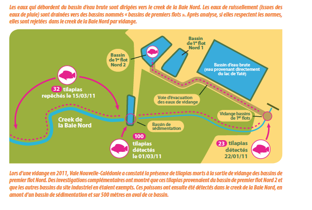 Début 2011, Vale Nouvelle-Calédonie constate la présence de tilapias dans le creek de la Baie Nord.