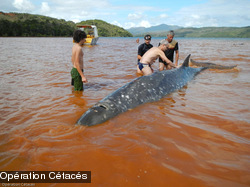 L’association Opération Cétacés, très active dans la protection et la recherche sur les mammifères marins du Territoire, était aussi sur le terrain pour réaliser des mesures et collecter des informations sur cet évènement.