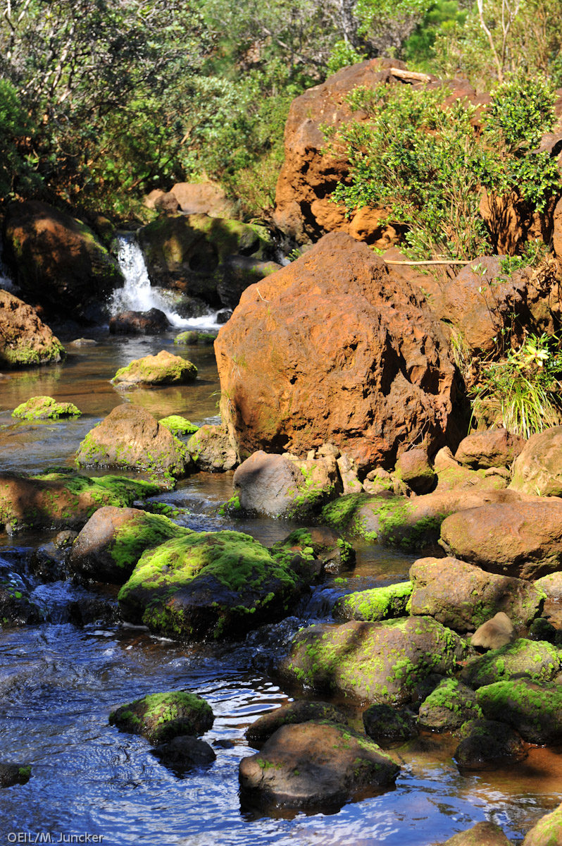 Parfois, ce sont certaines plantes à fleurs qui envahissent le cours d’eau. Elles peuvent être confondues avec les algues. C’est notamment le cas de l’hydrille verticillée (Cf. photo ci-dessous) que l’on retrouve dans de nombreux creeks de la Grande Terre. Cette plante est classée parmi les 100 espèces envahissantes les plus nuisibles au niveau mondial par l’Union Internationale pour la Conservation de la Nature (UICN). Elle est interdite à l’importation en Nouvelle-Calédonie.