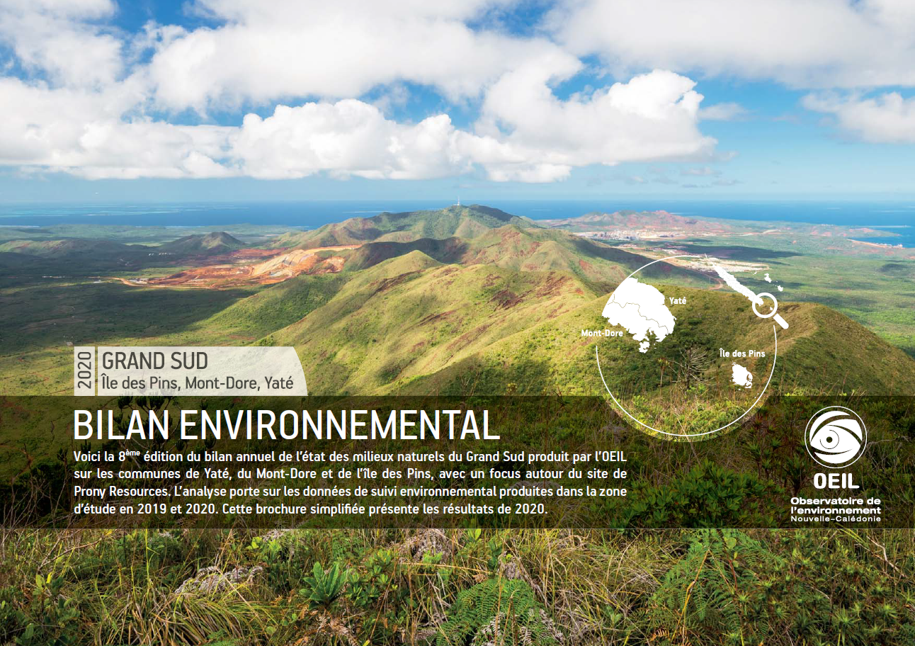 Voici la 8ème édition du bilan annuel de l'état des milieux naturels du Grand Sud produit par l'OEIL sur les communes de Yaté, du Mont-Dore et de l'île des Pins, avec un focus autour du site de Prony Resources. L'analyse porte sur les données de suivi environnemental produites dans la zone d'étude en 2019 et 2020. Cette brochure simplifiée présente les résultats de 2020.