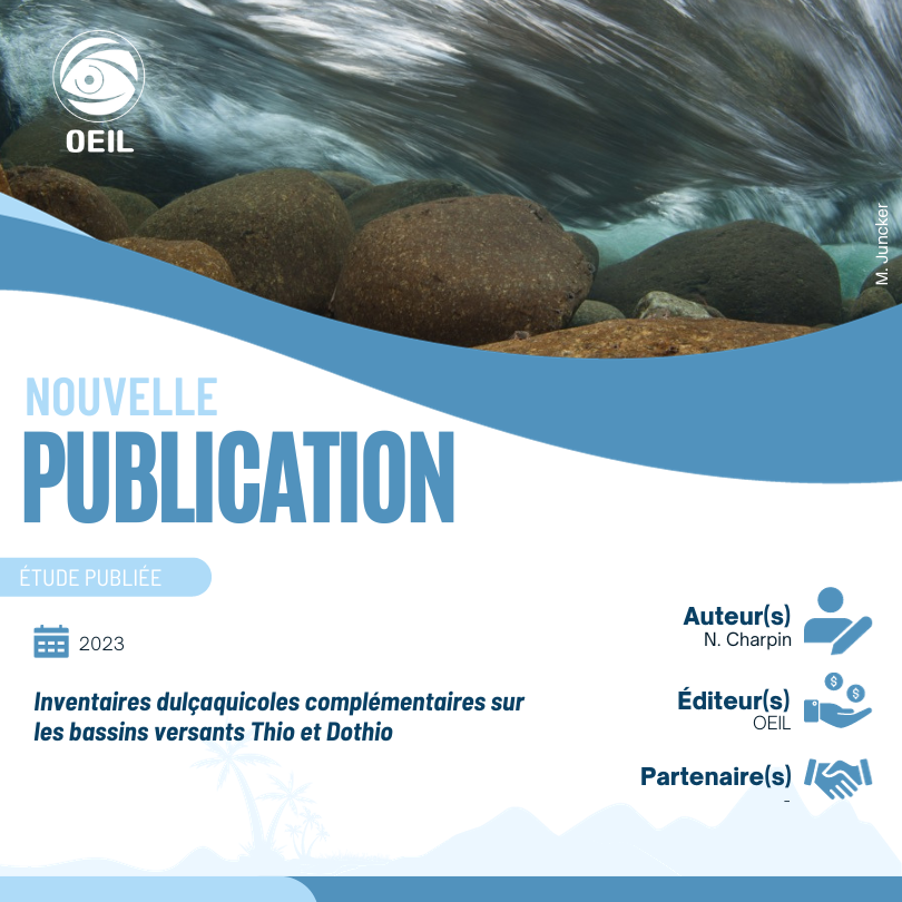 L'OEIL vient de publier l'étude suivante : Inventaires dulçaquicoles complémentaires sur les bassins versants Thio et Dothio.