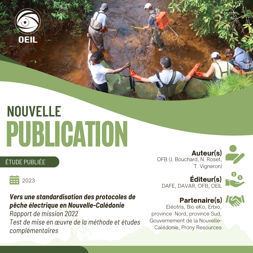 L'OEIL vient de publier l'étude suivante : Vers une standardisation des protocoles de pêche électrique en Nouvelle-Calédonie - Rapport de mission 2022 - Test de mise en œuvre de la méthode et études complémentaires.