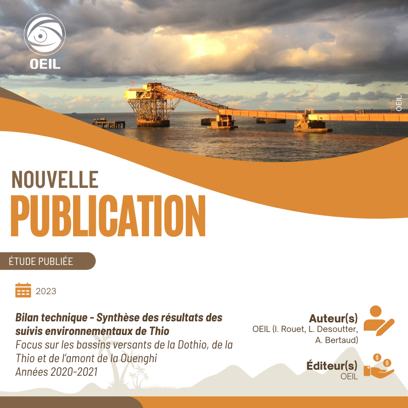 L'OEIL vient de publier l'étude suivante : Bilan technique - Synthèse des résultats des suivis environnementaux de Thio - Focus sur les bassins versants de la Dothio, de la Thio et de l’amont de la Ouenghi -Années 2020-2021.