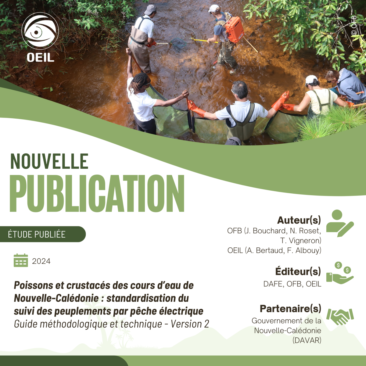 La première version du guide avait été rédigée dans le cadre d'une expertise réalisée en 2018 pour la standardisation des protocoles de pêche électrique sur les cours d’eau de Nouvelle-Calédonie (Bouchard et al, 2018) en partenariat avec l'Office Français de la Biodiversité, le service de l'eau de la DAVAR (Nouvelle-Calédonie) et avec le soutien de la DAFE (Etat). Ce travail avait confirmé des différences de pratiques entre opérateurs qui interprétaient de diverses manières le cadre normatif en vigueur en France. En outre, le guide expliquait l'importance de tenir compte de la largeur des cours d'eau et proposait une approche nouvelle adaptée à ceux de plus de 10 mètres de large : le protocole "Pêche par traits - Nouvelle Calédonie".